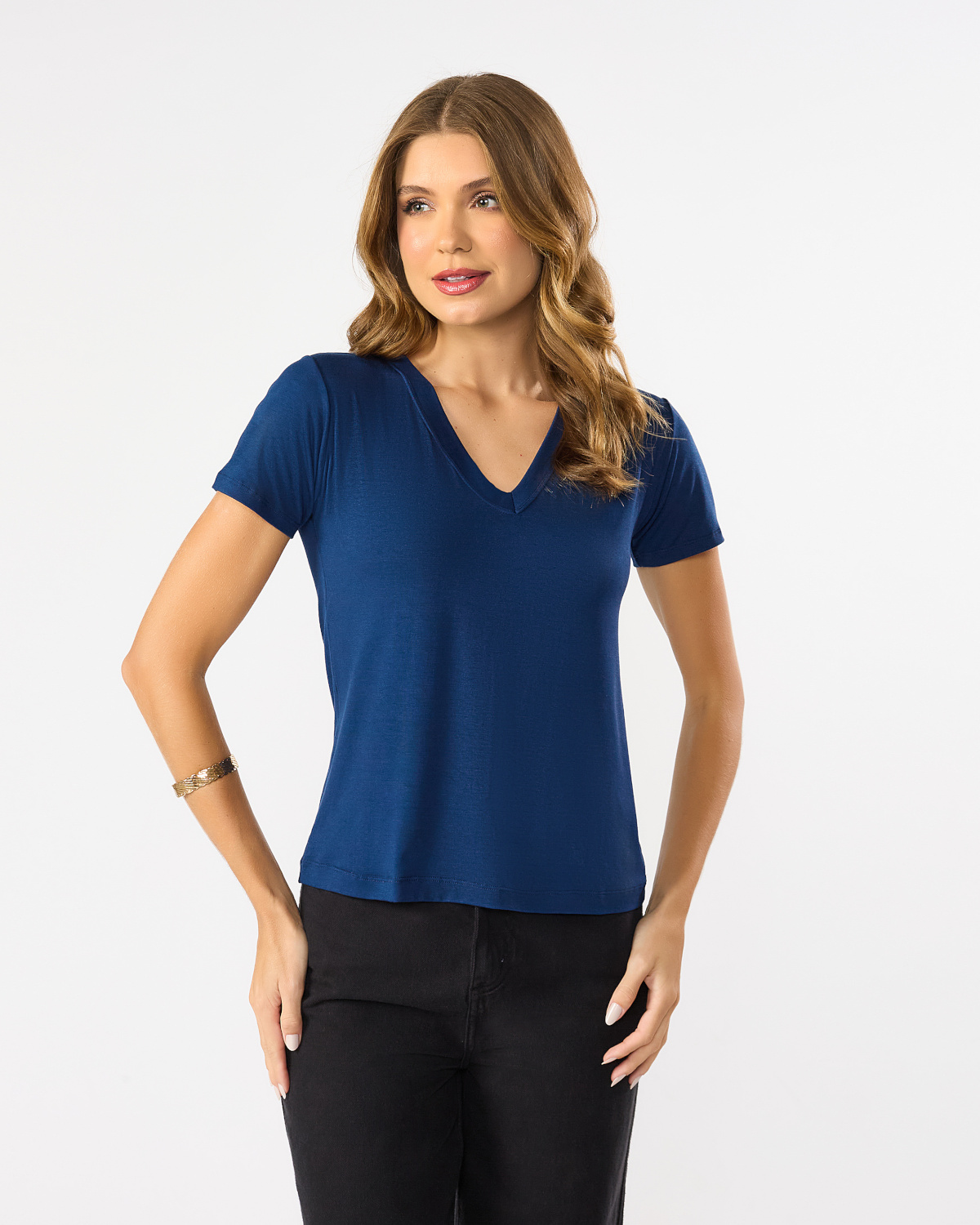 Com a Blusa Feminina Manga Curta Decote V em Viscolycra, você terá uma peça versátil e confortável para qualquer momento do seu dia. Uma escolha indispensável no seu guarda-roupa!