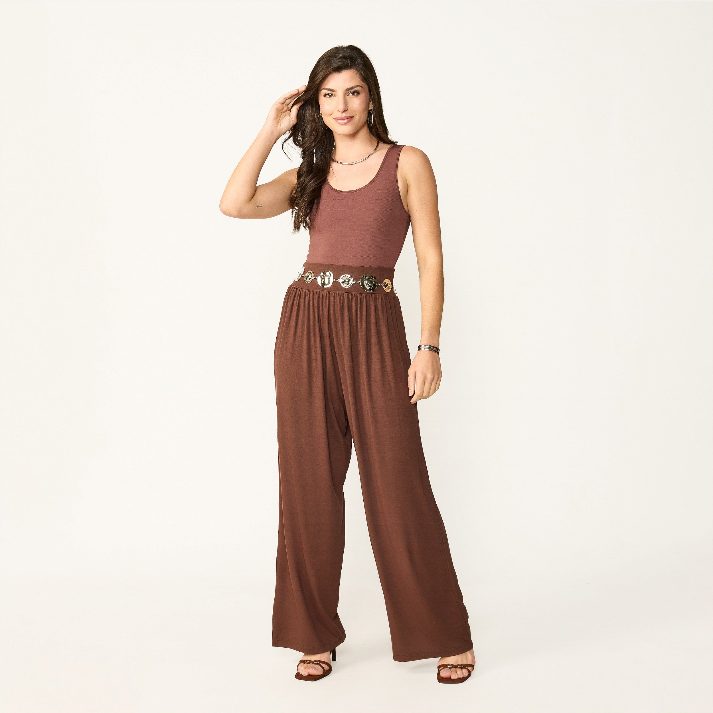 A Calça Feminina Franzida Cintura Alta em Viscolycra é a peça perfeita para quem busca um look confortável, elegante e cheio de estilo, tornando-se indispensável no seu guarda-roupa.